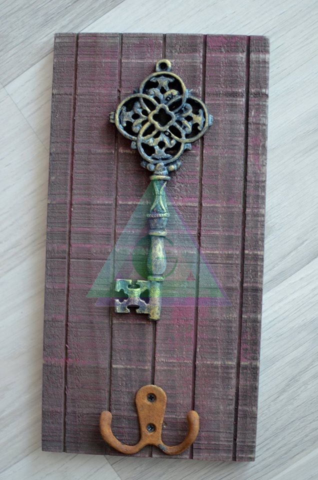 Funkcia: Kľúčenka na kľúče Materiál: Drevo Farba: Patina hnedá, patina zelená Rozmer: 25cm x 12,5cm