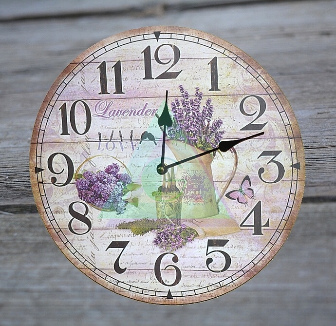 Nástenné hodiny do kuchyne v originálnom provensálskom štýle levandule