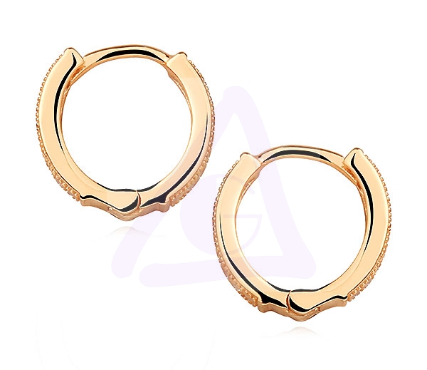 Strieborný šperk náušnice krúžky so Zirkónmi plátované zlatom vysoko leštené, technológia vkladania kamienkov Zirkónu Microsetting tesne vkladané vedľa seba pre trblietavý efekt.