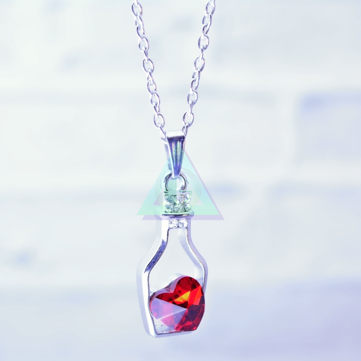 Srdce kryštál zirkónu vo fľaštičke originálny a dobre prepracovaný bižutérny šperk, prívesok s retiazkou ako darček pre modernú ženu vhodný na každú príležitosť.